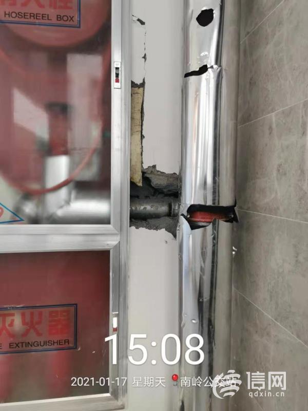 同时,该工作人员表示,因确实有不少业主反映此事,他们也到现场进行抽查,对于典型问题也进行查看。“有很多业主反映消防栓箱外墙体裂缝的问题,怀疑是房屋主体结构出现了问题,我们也着重进行了检查,发现这面墙体并不是承重墙,裂缝主要原因是前段时间降温,导致消防栓管道冻裂,顺带的管道分支墙体也被拉裂。还有缺少地线等几个突出问题,我们对照验房报告抽查了几户,绝大多数地线已经整改完毕。”